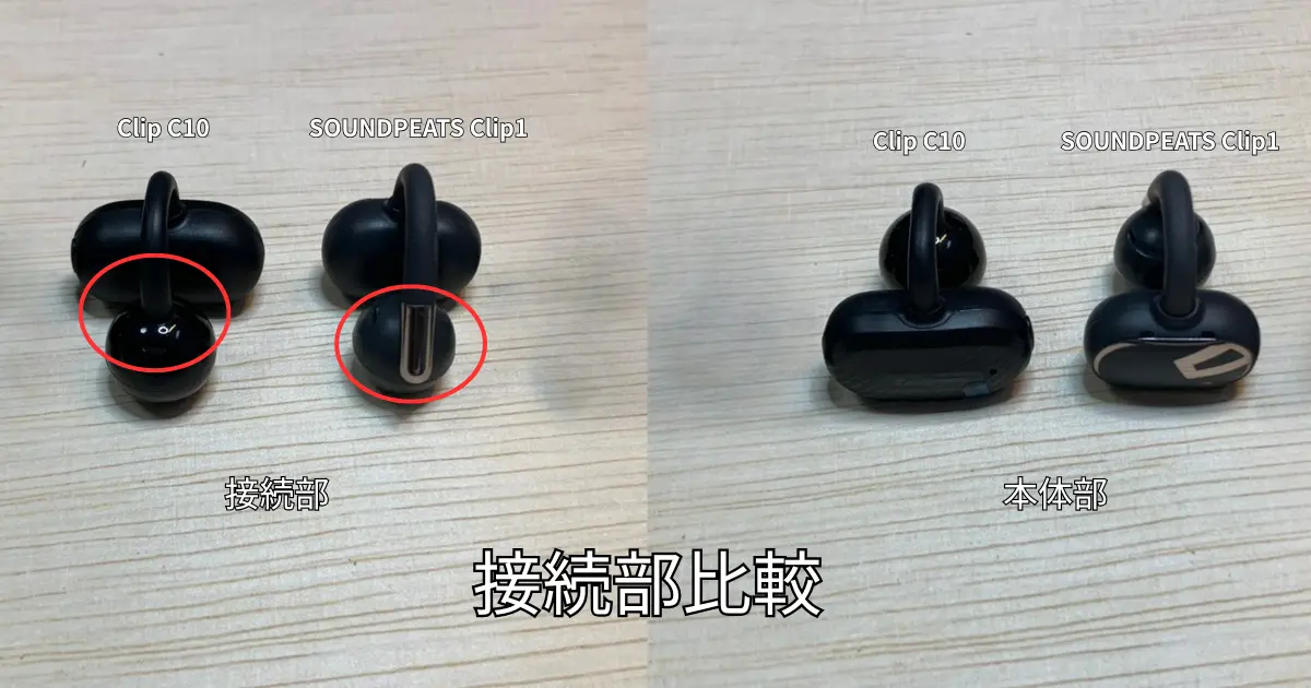 Clip C10とSOUNDPEATS Clip1 との比較写真